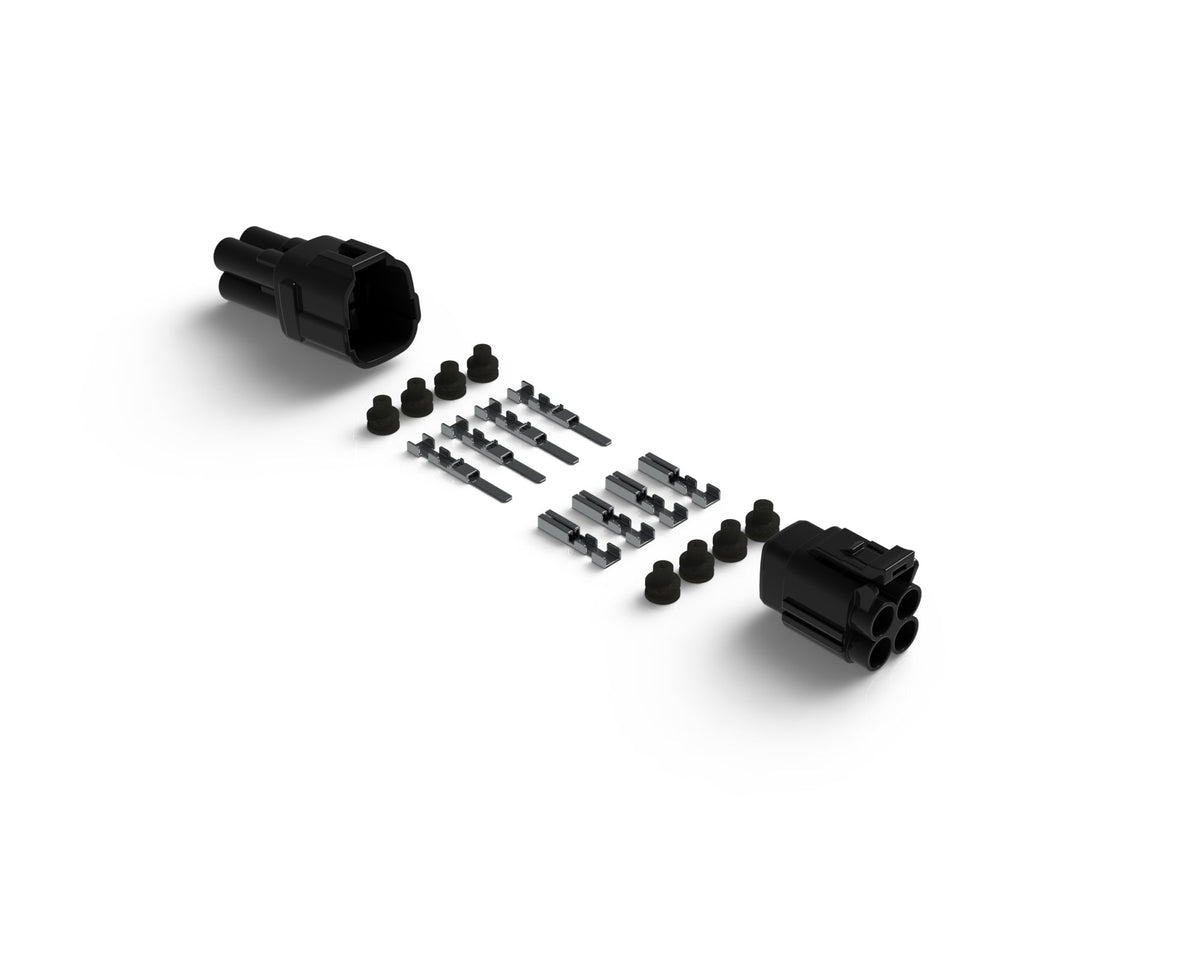 Disse premium MT Series vandtætte stik bruges i DENALI 2.0 lys og ledningsnet. Sættet inkluderer både han- og hunstik, krimpeterminaler samt vandtætte ledningstætninger. Ved brug af et overkommeligt krimpeværktøj (DNL.CTR.CRIMP) kan disse stik krimpes på ledninger på få sekunder for at modificere, tilpasse eller udskifte elektriske forbindelser.