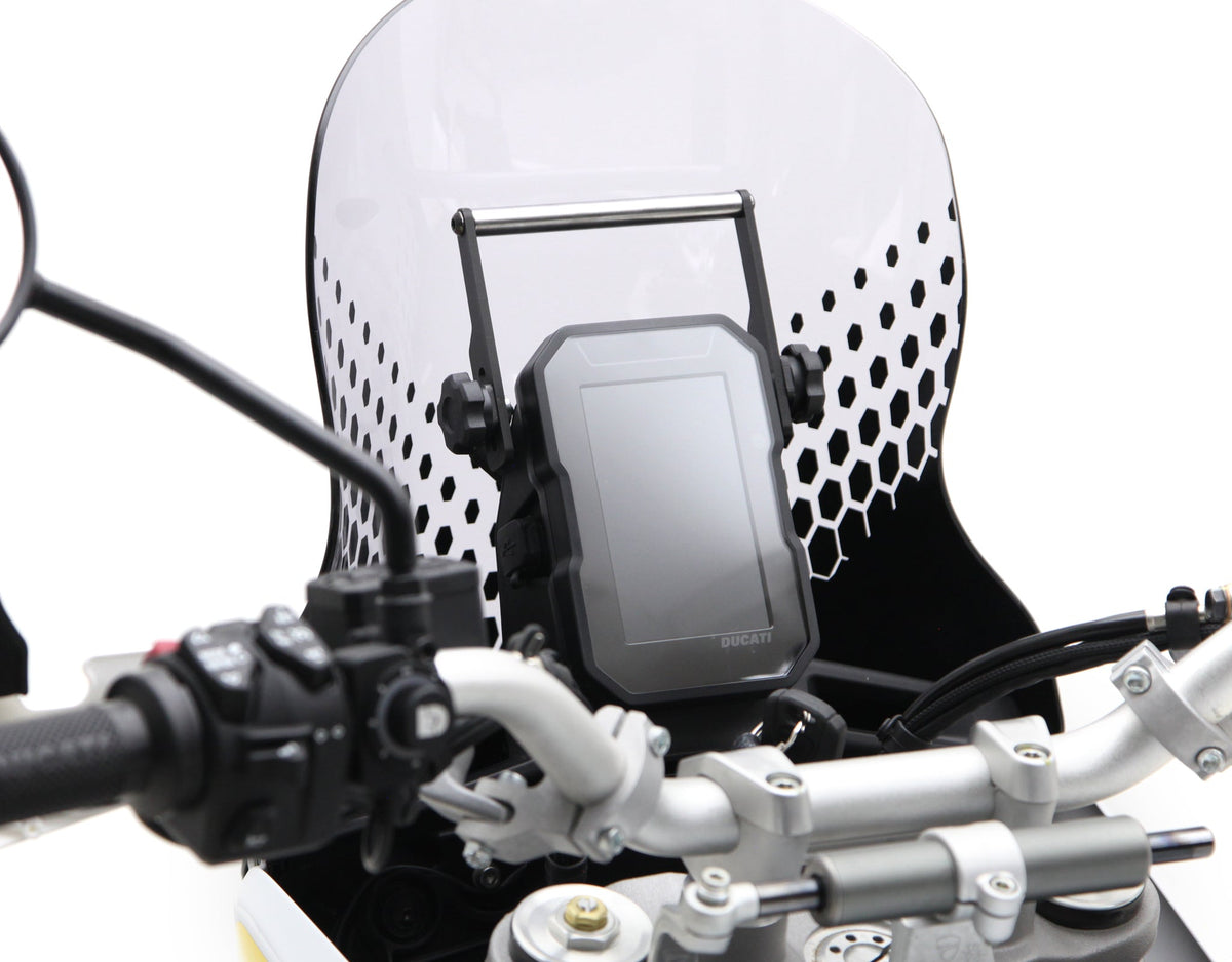 Dette køretøjsspecifikke monteringssæt placerer en 12 mm tilbehørs-tværstang på det ideelle sted på din Ducati DesertX! Tværstangen er specielt dimensioneret til at tilføje DENALI Wireless Charging Phone Mount eller andre populære enhedsmontager fra RAM, QuadLock og andre.