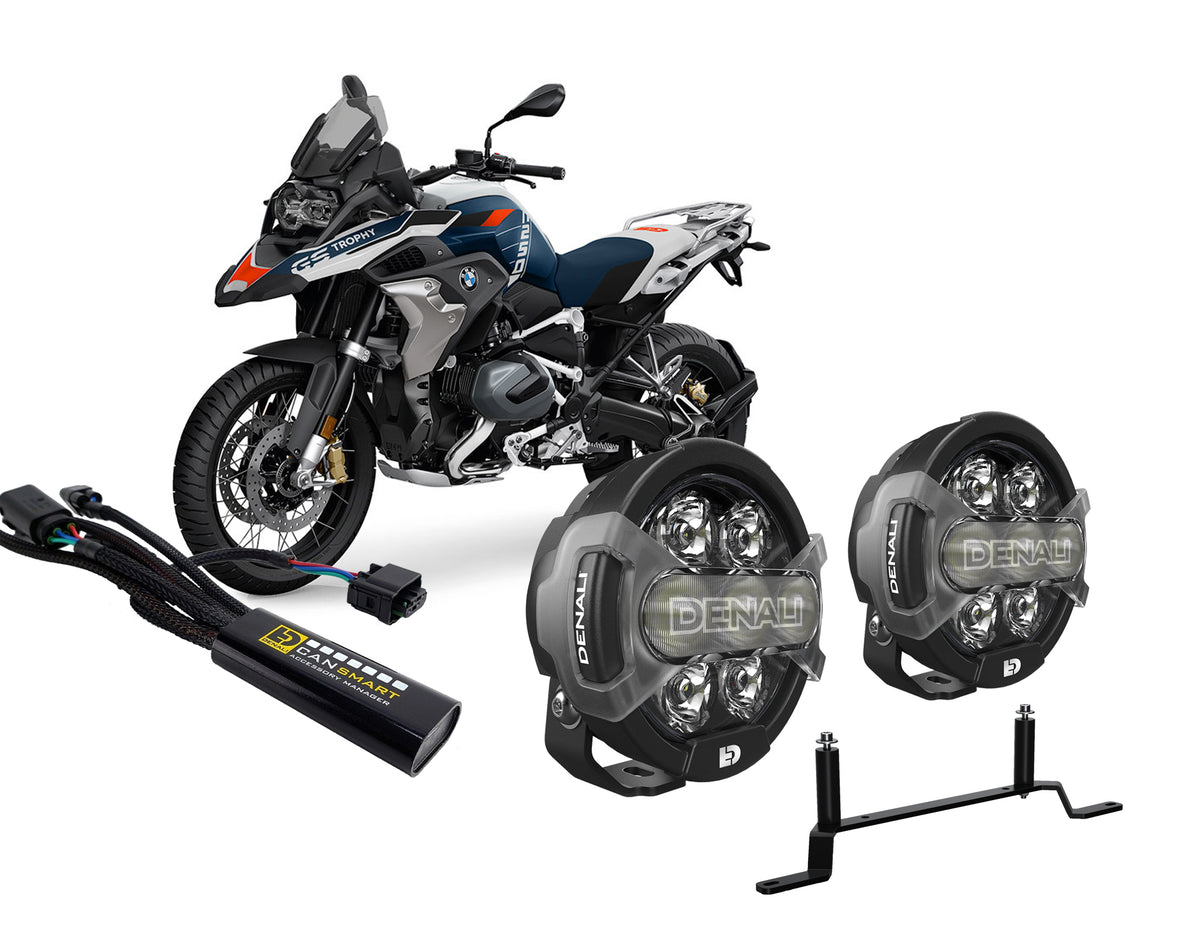 BMW R1250GS D7 PRO CANsmart™ バンドルで道路上での視認性を高めましょう。このバンドルにはDenali D7 Proライトとライトマウント、BMW CANsmart™ コントローラーが含まれており、最も強力なライトセットであなたを目立たせ、道路を照らします。安全にライディングしたいBMWオーナーに最適です。