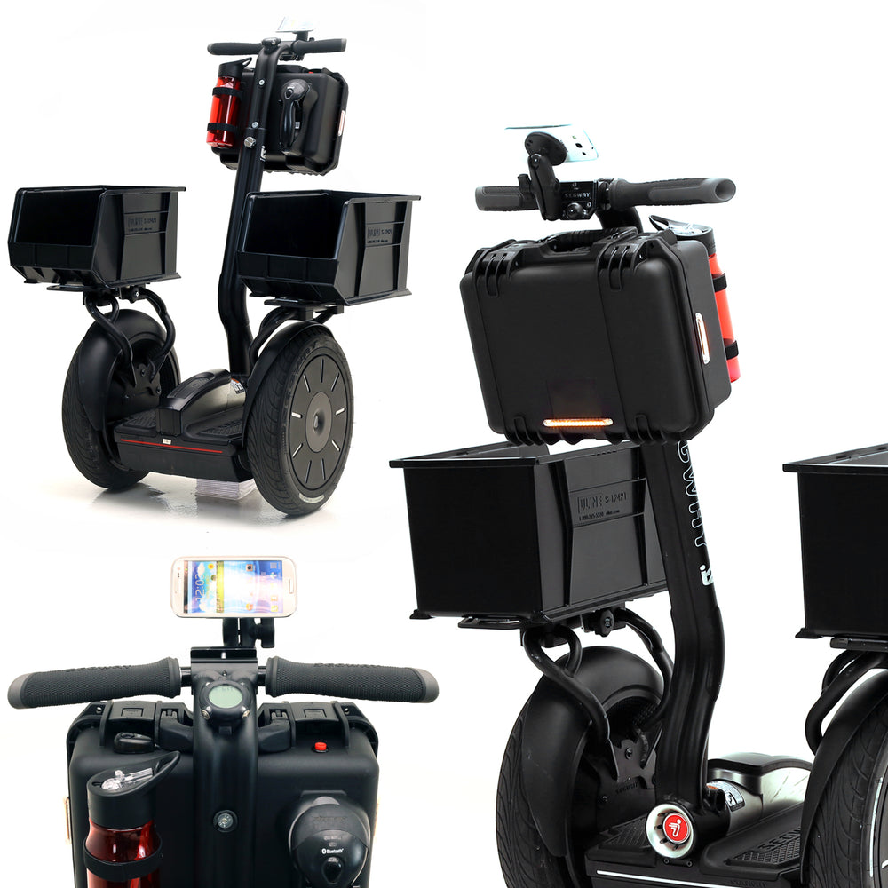 우리는 또한 상업 사용자들이 세그웨이 플랫폼에 기존 유형의 저장 용기를 부착할 수 있도록 하는 모듈식 퀵 릴리스 저장 시스템을 개발했습니다.