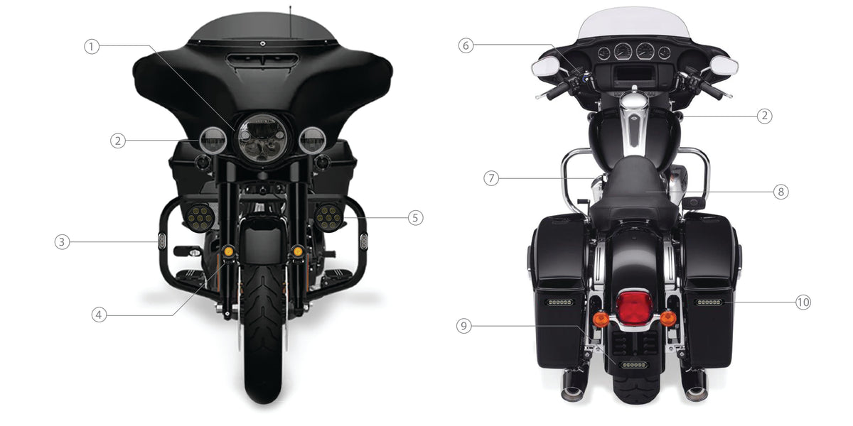 DENALI는 조명 및 가시성 패키지를 완벽하게 제공할 수 있는 유일한 브랜드로, 조명, 조명 장착대, 경적, 경적 장착대, 보조 브레이크등, 그리고 모든 액세서리의 손쉬운 설치와 통합 제어를 제공하는 단일 지능형 플러그 앤 플레이 컨트롤러를 포함합니다.
