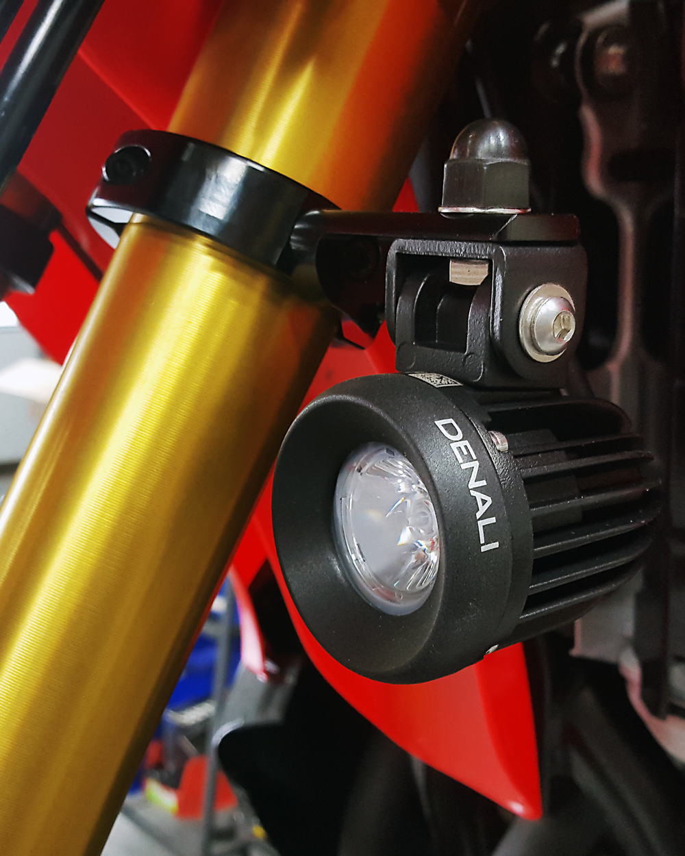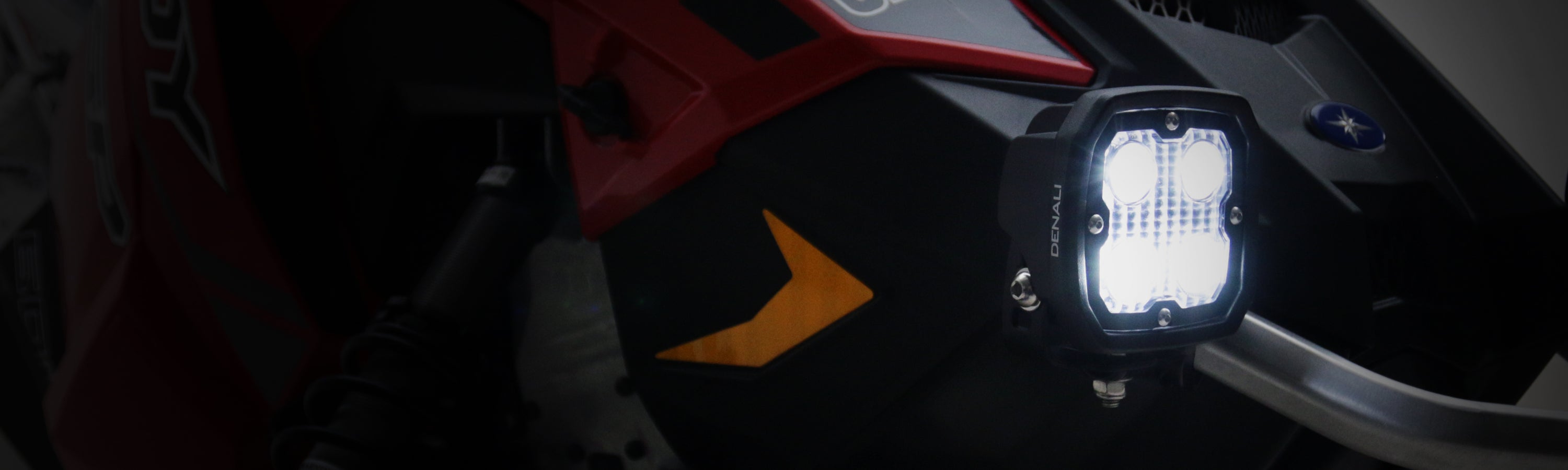 Our handlebar light kits mount a set of our super bight LED lights using our robust clamp mount. This setup positions the lights up high and shines the light exactly where you want it as you turn your bars.