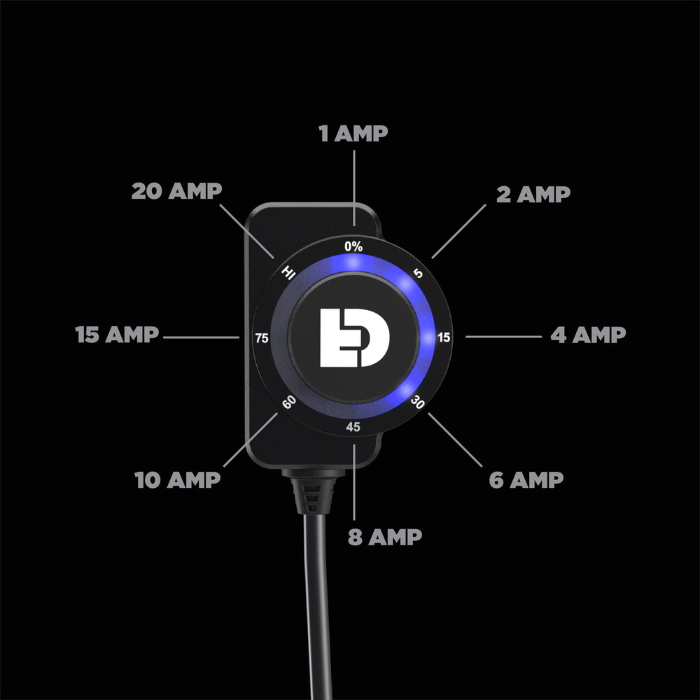 Nasz przełomowy kontroler oświetlenia DialDim ™ jest wyposażony w wielokolorowy przełącznik przyciemniania halo, który umożliwia niezależne włączanie/wyłączanie i przyciemnianie dwóch zestawów świateł pomocniczych z jednej skonsolidowanej wiązki przewodów. Przełącznik LED halo wyświetla dokładne ustawienia i umożliwia łatwe przyciemnianie w locie. Niebieska aureola steruje pierwszym zestawem świateł, a zielona aureola steruje światłem drugim; wystarczy dwukrotnie kliknąć, aby przełączać się między dwoma obwodami.