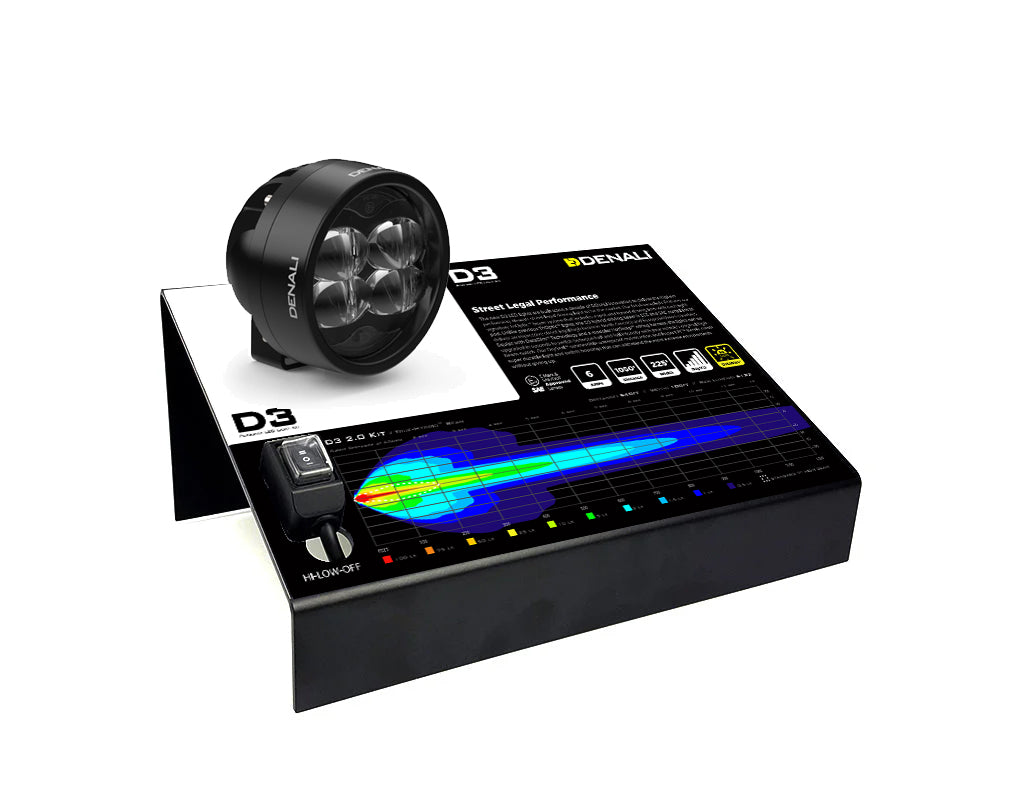 Seeing is believing! Once your customers see the power of the DENALI D3 they’ll be sold. The interactive dealer display can be plugged directly into an 100v-240v outlet, or by using the included battery power wiring adapter, the display can be powered from a standard motorcycle battery, perfect for those remote events where power isn’t available. Sturdy metal construction allows mounting the unit on a shelf, counter or slat-wall (brackets not included).