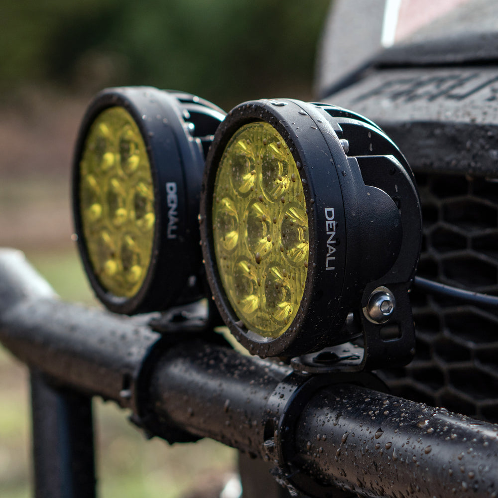 Esta imagem apresenta nossos pods de luz D7 com lentes amarelas seletivas montadas no pára-choque com nosso grampo de montagem de luz de 50-60 mm.