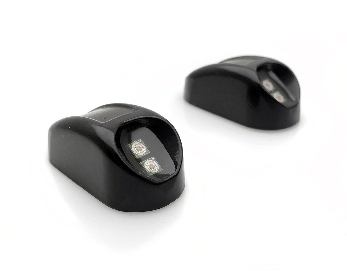 虽然吊舱可以齐平安装到任何平坦表面上,但它们的外形也经过专门设计,以匹配工厂转向信号灯底座的原始形状。这在工厂转向信号灯位置创建了一个超级干净、低调的安装位置。通过将吊舱添加到您的前挡泥板、护手板或行李箱中,还可以将其用作辅助转向信号灯。